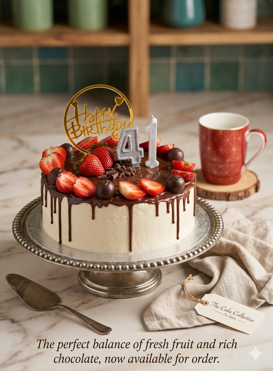 Un adevărat răsfăț pentru simțuri: blat bogat și umed de cacao, îmbinat cu o inserție delicată de fructe proaspete, completat de o cremă fină de mascarpone cu Nutella. Decorat cu un drip generos de ciocolată neagră, tortul este acoperit cu o cremă de mascarpone ușoară, fină, iar deasupra strălucește un strat delicat de frișcă și un strop de zahăr pudră pentru un plus de eleganță.